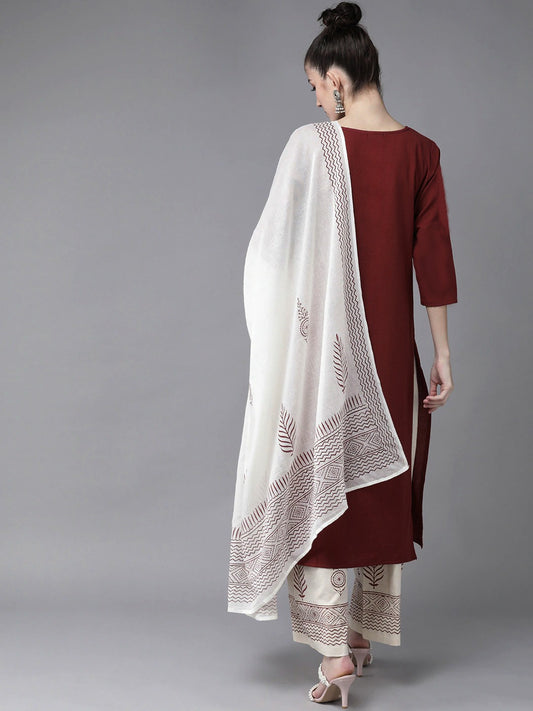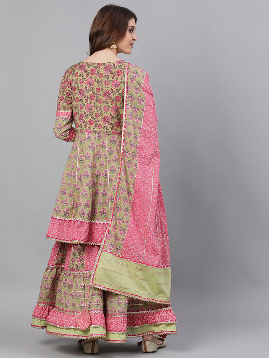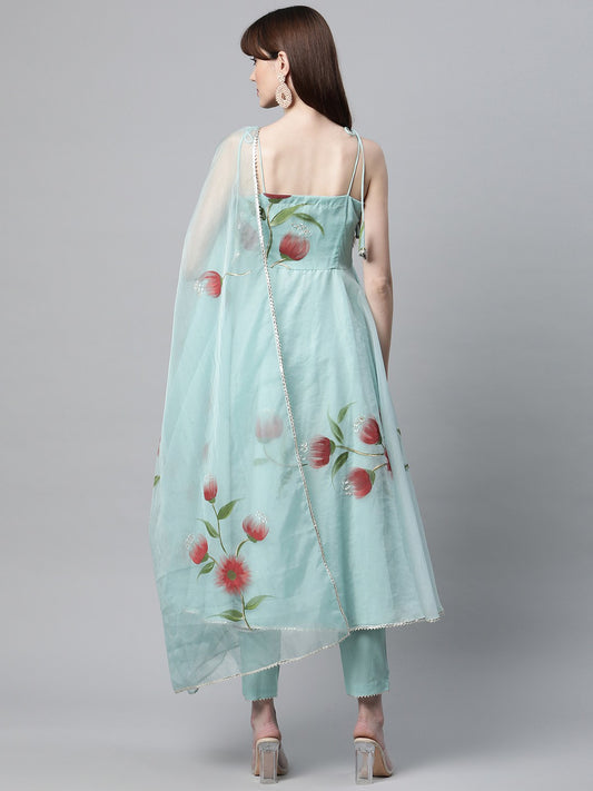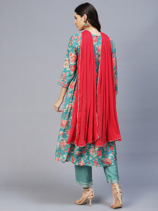 Floral Print Kurta, Trouser/Pant & Dupatta Set