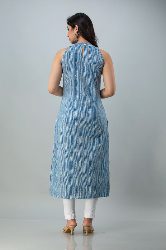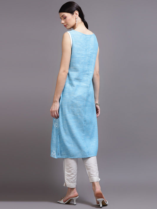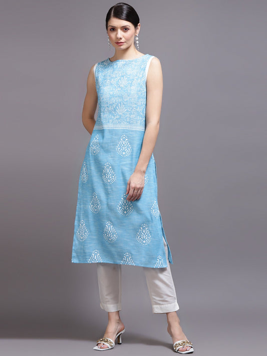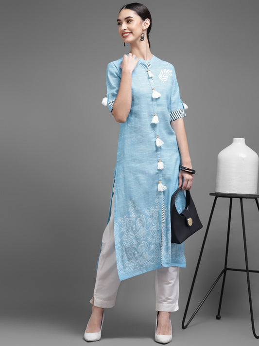 Printed Straight Blue Kurta