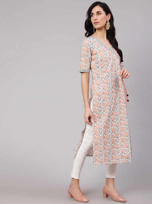 Printed Grey Straight Kurta