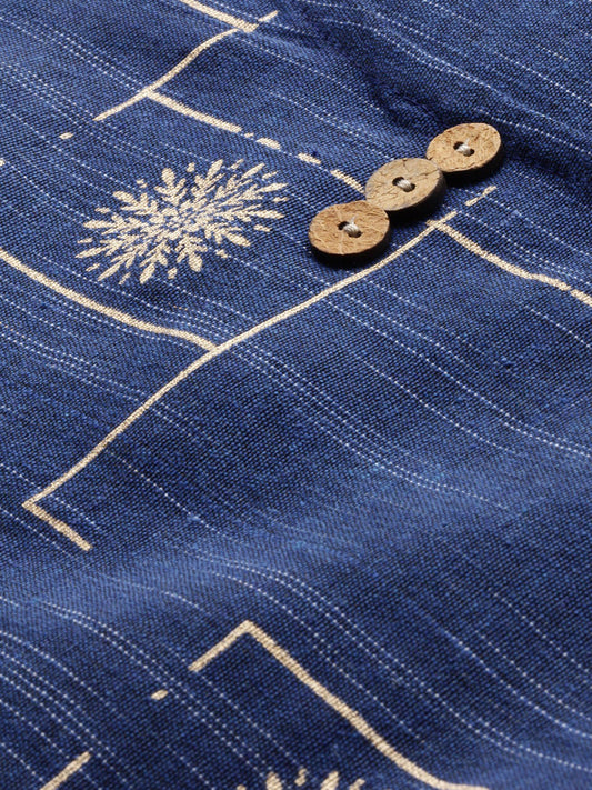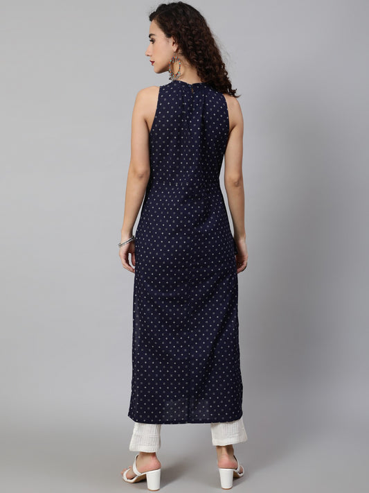 Navy Blue Printed Straight Kurta