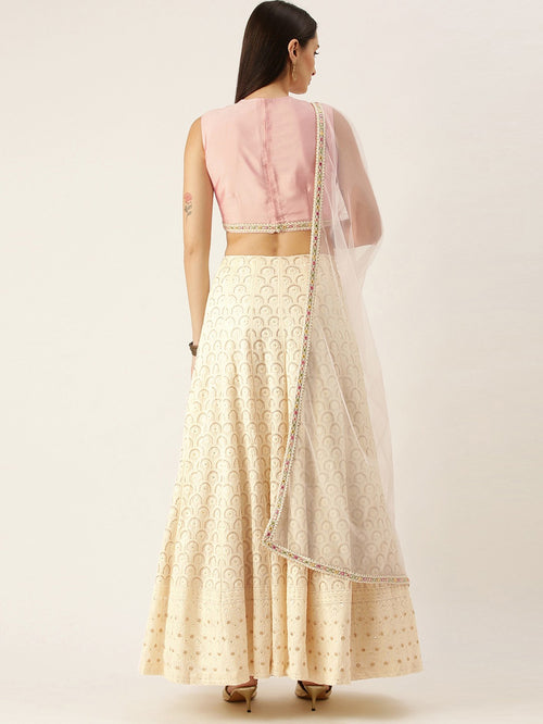 Pink Off-White Embroidered Ready to Wear Lehenga Blouse With Dupatta