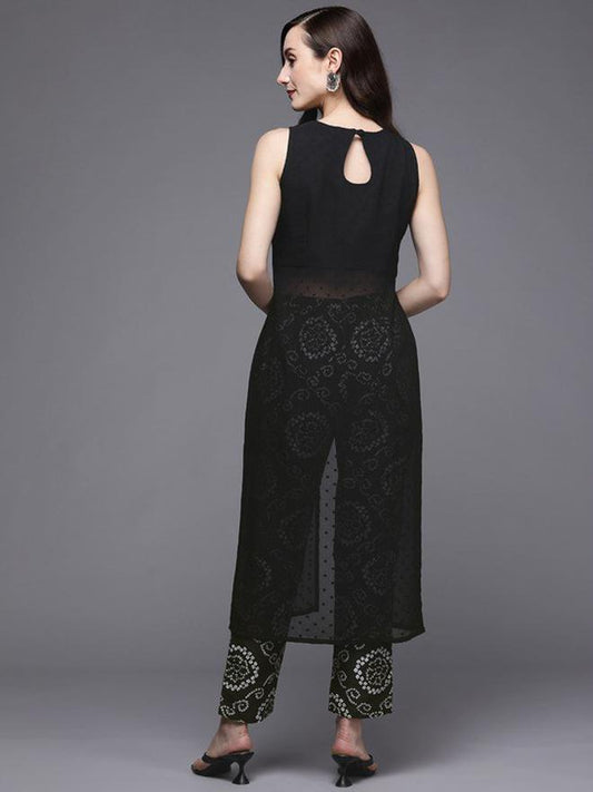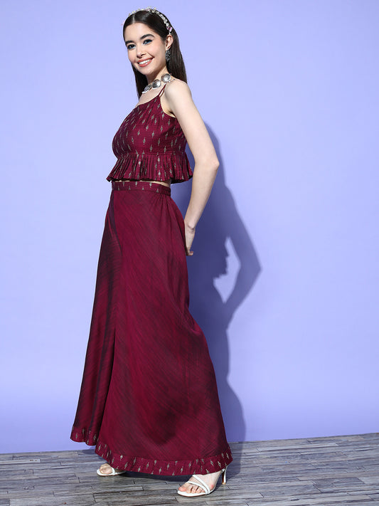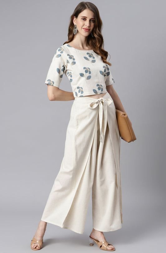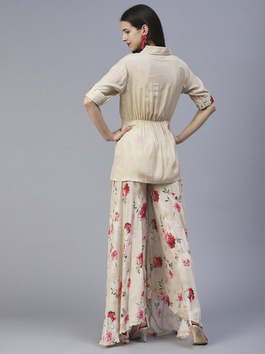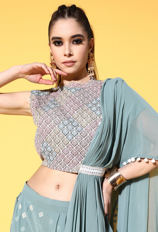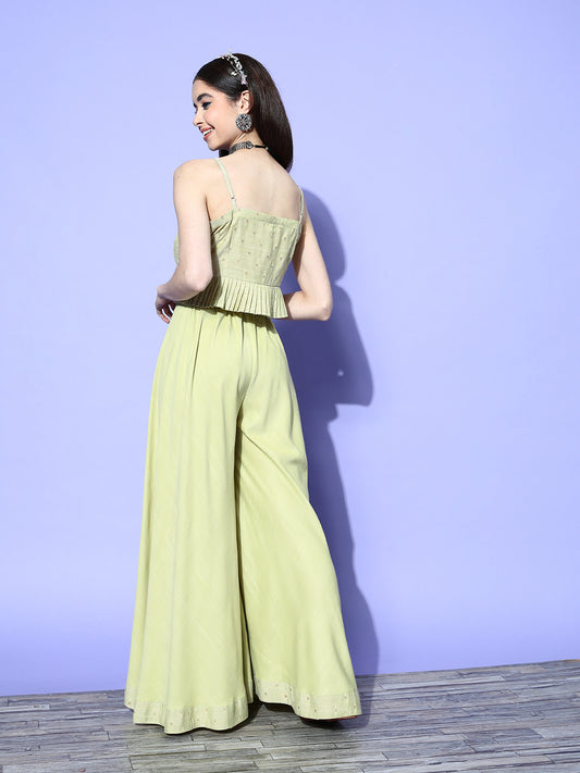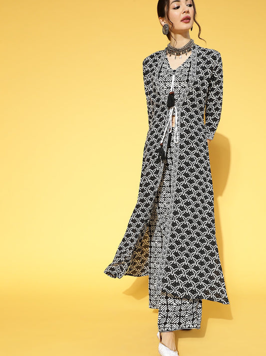 Designer Embroidered Crop Top and Palazzo With Printed Jacket